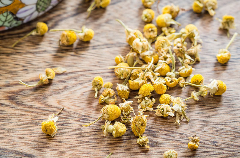 The dried flowers of chamomile contain many terpenoids and flavonoids, which contribute to its medicinal properties. Chamomile preparations are commonly used for many human ailments, including hay fever, inflammation, muscle spasms, menstrual disorders, insomnia, ulcers, wounds, gastrointestinal disorders, rheumatic pain and hemorrhoids. (Gupta, 2010)