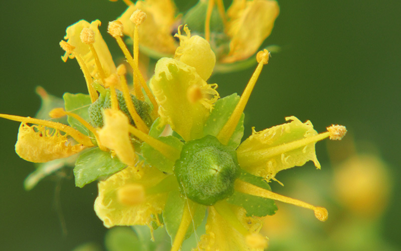 Rue is contraindicated among pregnant women. Take care if applying rue to the skin as the interaction with the sun may cause irritation or blistering in some people.