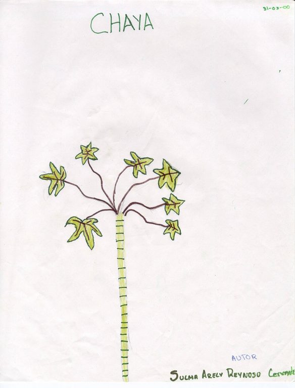 Doña Alicia: For one glass of water, crush up 4 gently boiled chaya leaves and then put in whatever other flavor you want – lime, orange, or pineapple.
